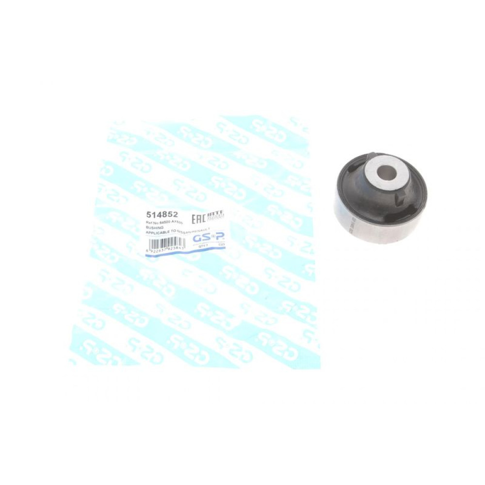 Сайлентблок рычага переднего/снизу/сзади Nissan Micra/Note/Renault Clio III/Modus 04- 514852 GSP. Кросс-коды: 017-00406, 16-14 610 0005, 18841, 18981, 22865, 22866, 22867, 2307-0796, 251T0457, 270612, 29411 01, 37-07236-5, 4235027, 48624, 50650, 54500 AX600, 54500 EL000, 54500-1JY0A, 54500-AX000, 54500ED50A, 54501 AX600, 54501 EL000, 54501-AX000, 54560AX600, 5457